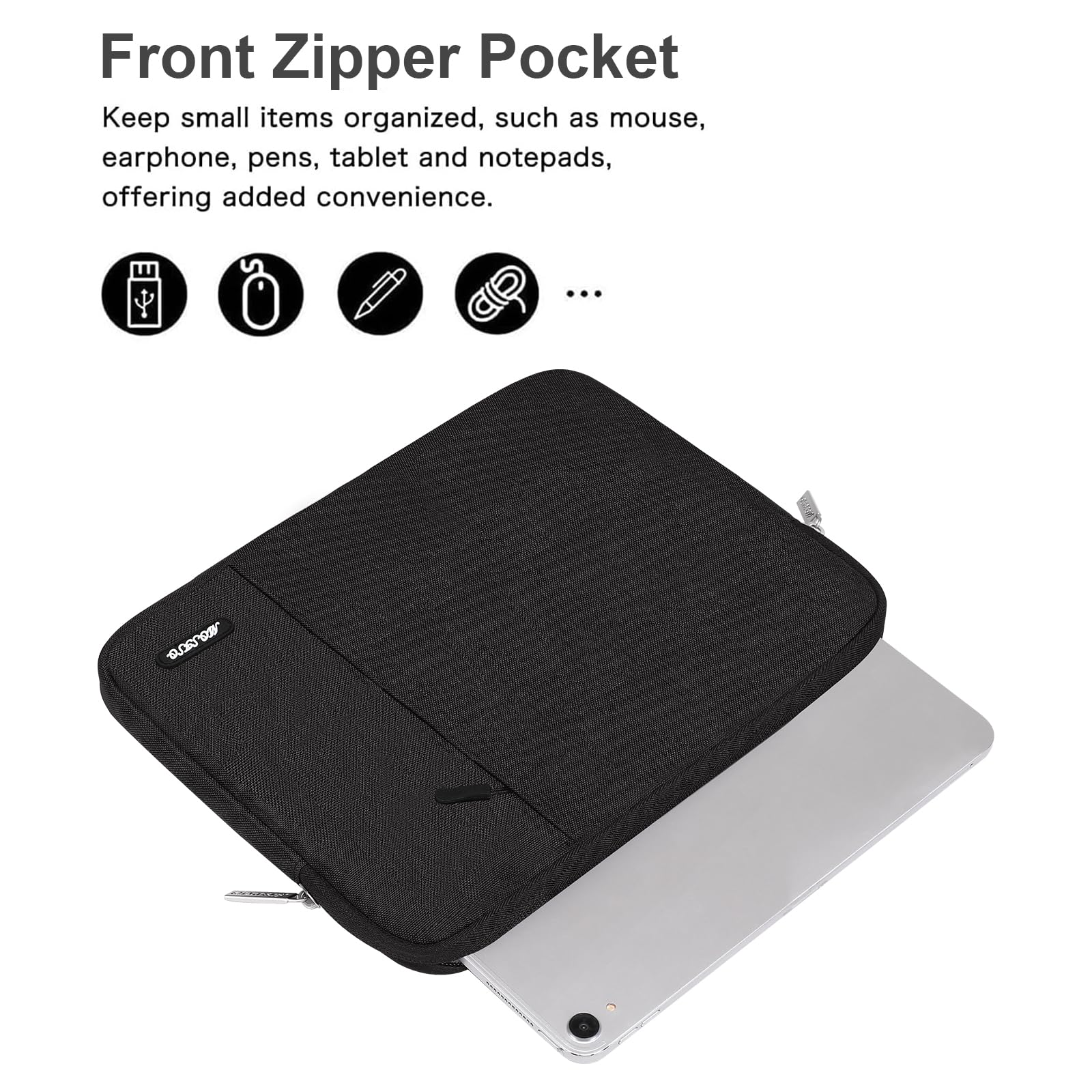 • Extra pocket in front provides enough space to keep mouse, earphone, pens and notepads well organized, offering added convenience. This protective carrying sleeve case cover bag with pocket is ideal for you to take your tablet out.