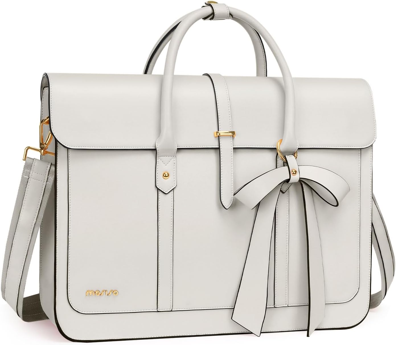 MOSISO Laptop Bag for Women, 13-14 inch, 15-15.6 inch PU Leather Laptop Shoulder Bag Convertible Backpack, 16 inch,PU Leather Laptop Shoulder Bag Convertible Backpack, 13.3 inch Messenger Bag Casual Handbag Work Briefcase Travel Computer Bag with Bowknot