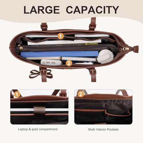 Large Capacity & Multiple Compartments Tote Bag with Laptop Compartment for TravelLarge Capacity & Multiple Compartments Tote Bag with Laptop Compartment for Travel15.6 inch PU Leather Tote Bag for WomenWaterproof Computer Bags Work Briefcase for Business Office15.6 inch PU Leather Arc-shaped Pocket Tote Bag&Clutch PurseMOSISO Laptop Tote Bag for WomenMulti-functional computer bag for Work BusinessLaptop Bag Large Capacity Work Handbag with Bowknot