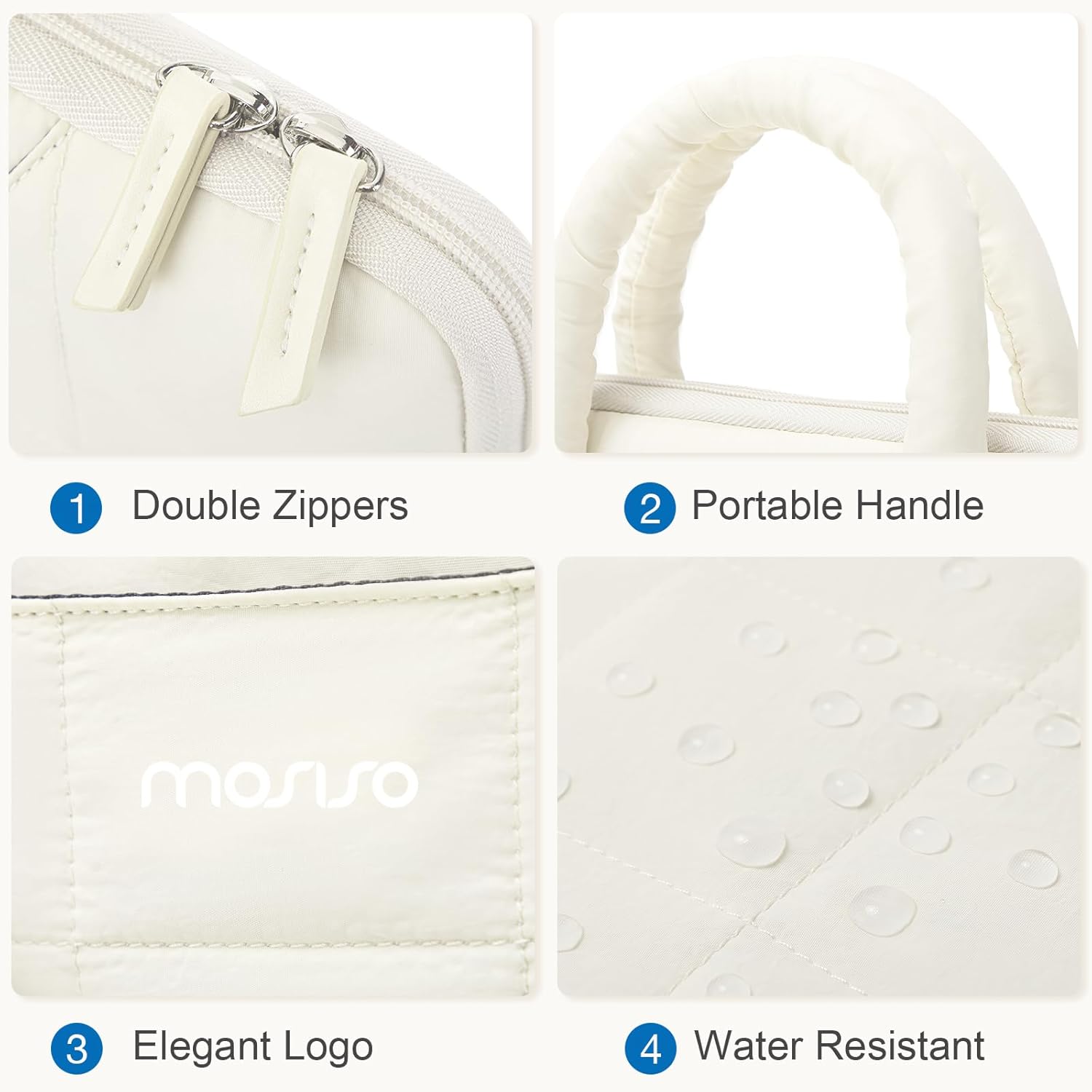 MOSISO 13-14 inch Laptop Case, 13.3 inch Puffy Laptop Sleeve Compatible with MacBook Air 13 13.6/Pro 13/Pro 14,HP Acer Dell ASUS Lenovo, Rectangle Quilted Computer Bag with Handle&Flower Pendant, Sand