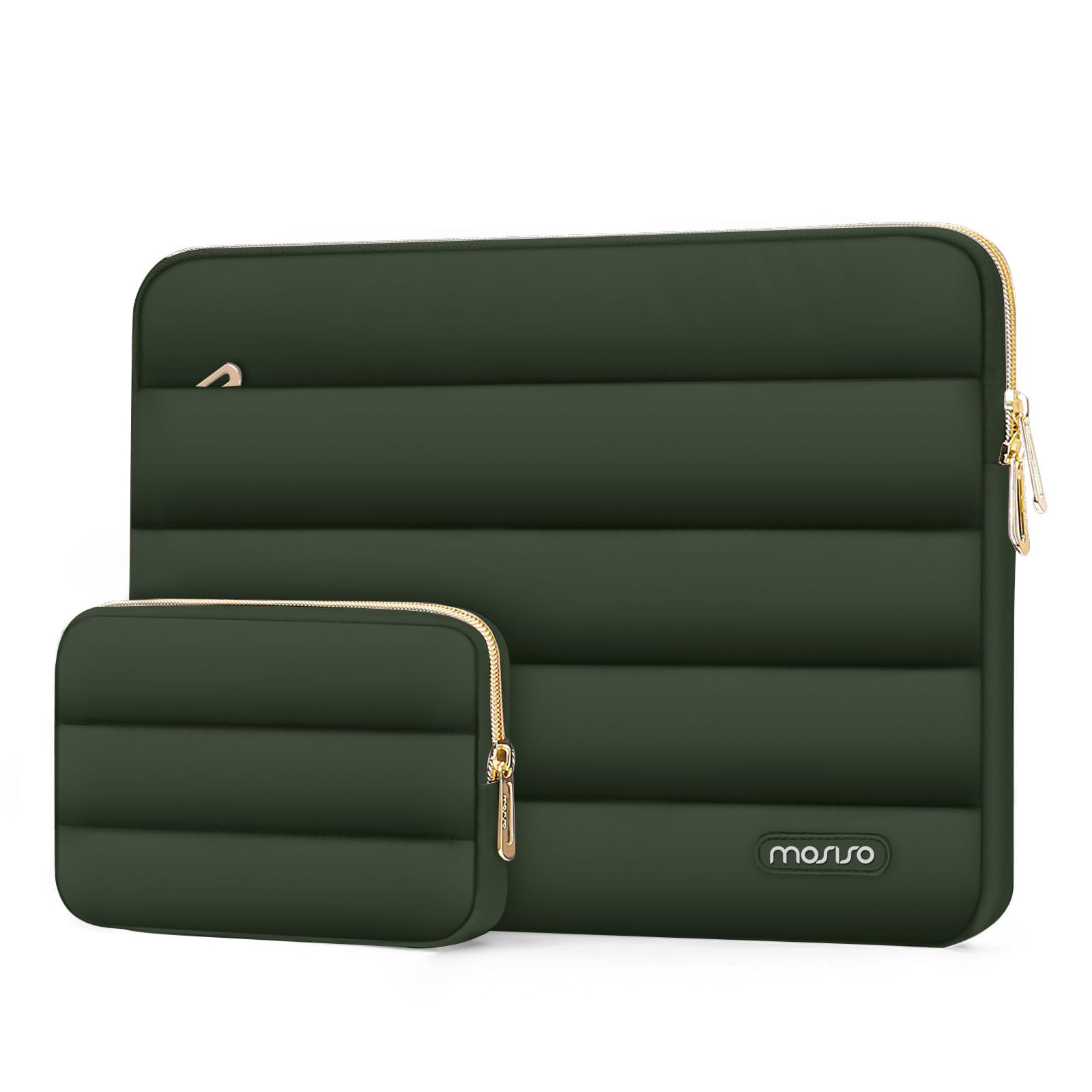 MOSISO 13.3 inch Laptop Case, 13-13.3 inch Puffy Laptop Sleeve Compatible with MacBook Air 13 13.6 M4 M3 M2 M1/Pro 13/Pro 14, HP Dell ASUS Lenovo,Polyester Horizontal Bag with Small Case, Brown