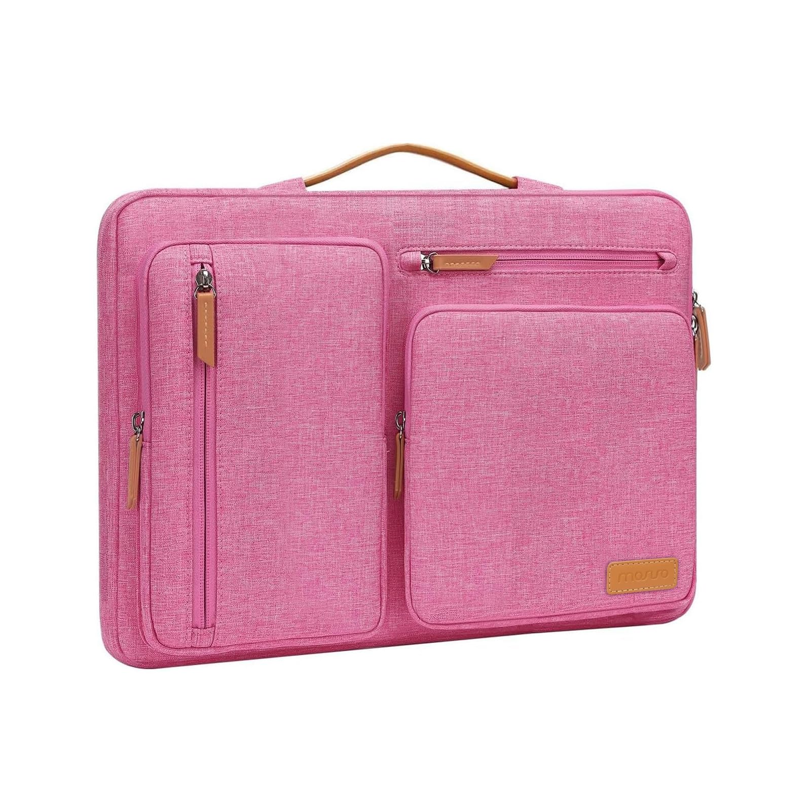 - 360 degree all around protective reinforced interior edge briefcase carrying case bag protect your laptop from any accidental dropping. Extendable handle design makes it to carry your laptop around in comfort, you can also tuck away the handle. Side opening zipper design, avoid accidental dropping of your laptop while carrying. 4 front zipper pockets provide enough space to keep mouse, earphone, pens and notepads, offering added convenience.