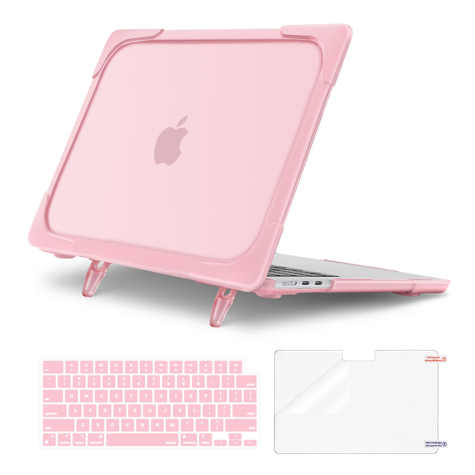 MOSISO Compatible with MacBook Air 15 inch Case 2025 2024 2023 Release M4 A3241 M3 A3114 M2 A2941, Heavy Duty Plastic Hard Shell Case Cover with Fold Kickstand&Keyboard Cover&Screen Film, Pink