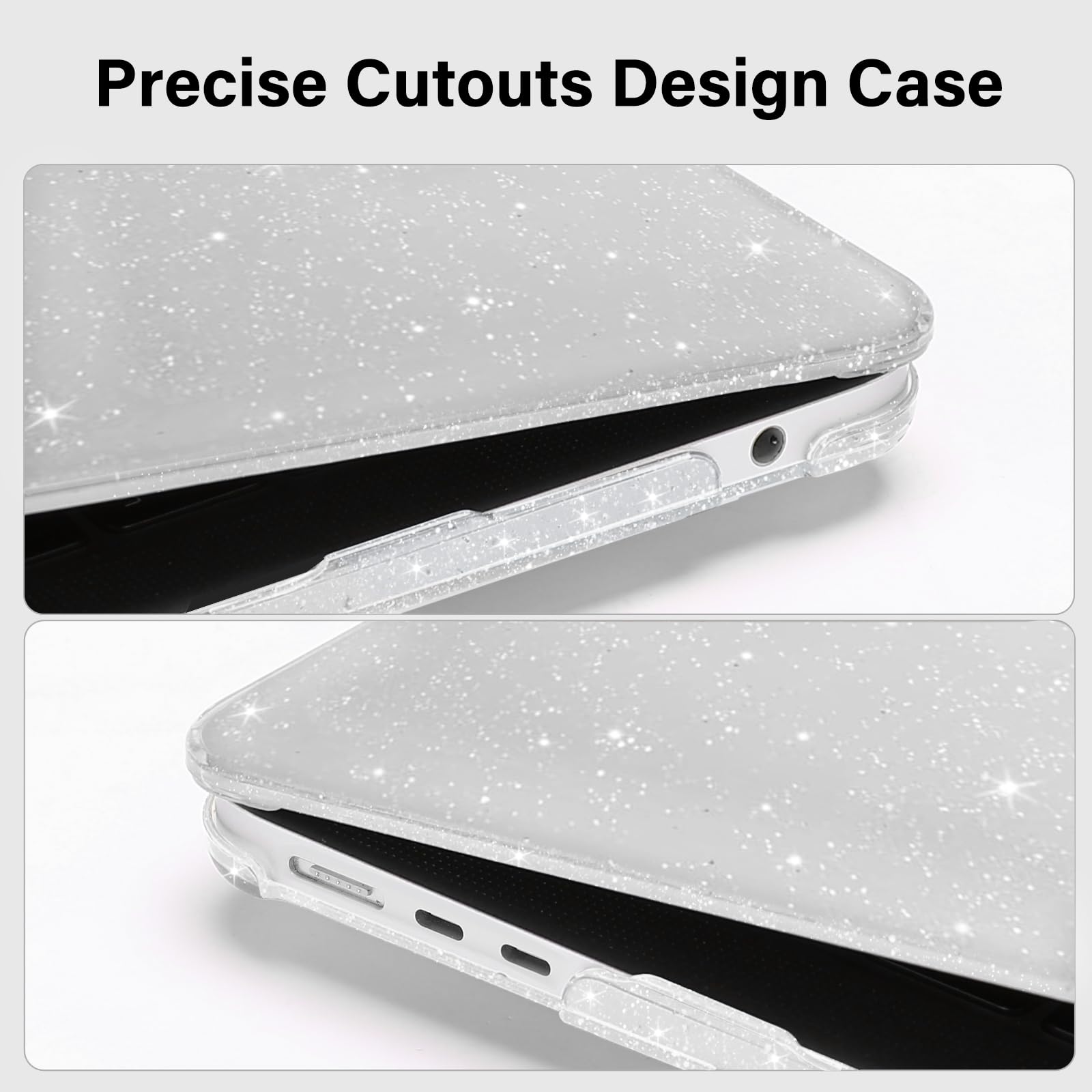 MOSISO Compatible with MacBook Air 15 inch Case 2025 2024 2023 Release M4 A3241 M3 A3114 M2 A2941, Sparkly Glitter Plastic Hard Shell&Keyboard Cover&Screen Protector&Webcam Cover&Type C, Transparent
