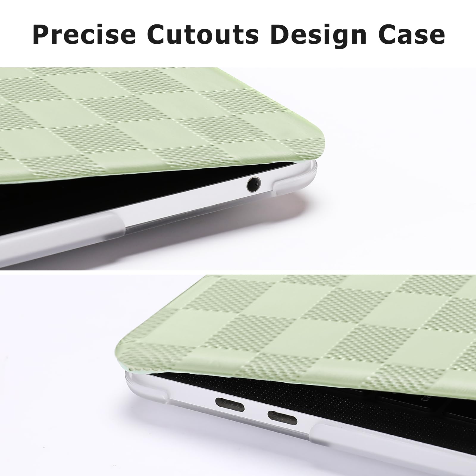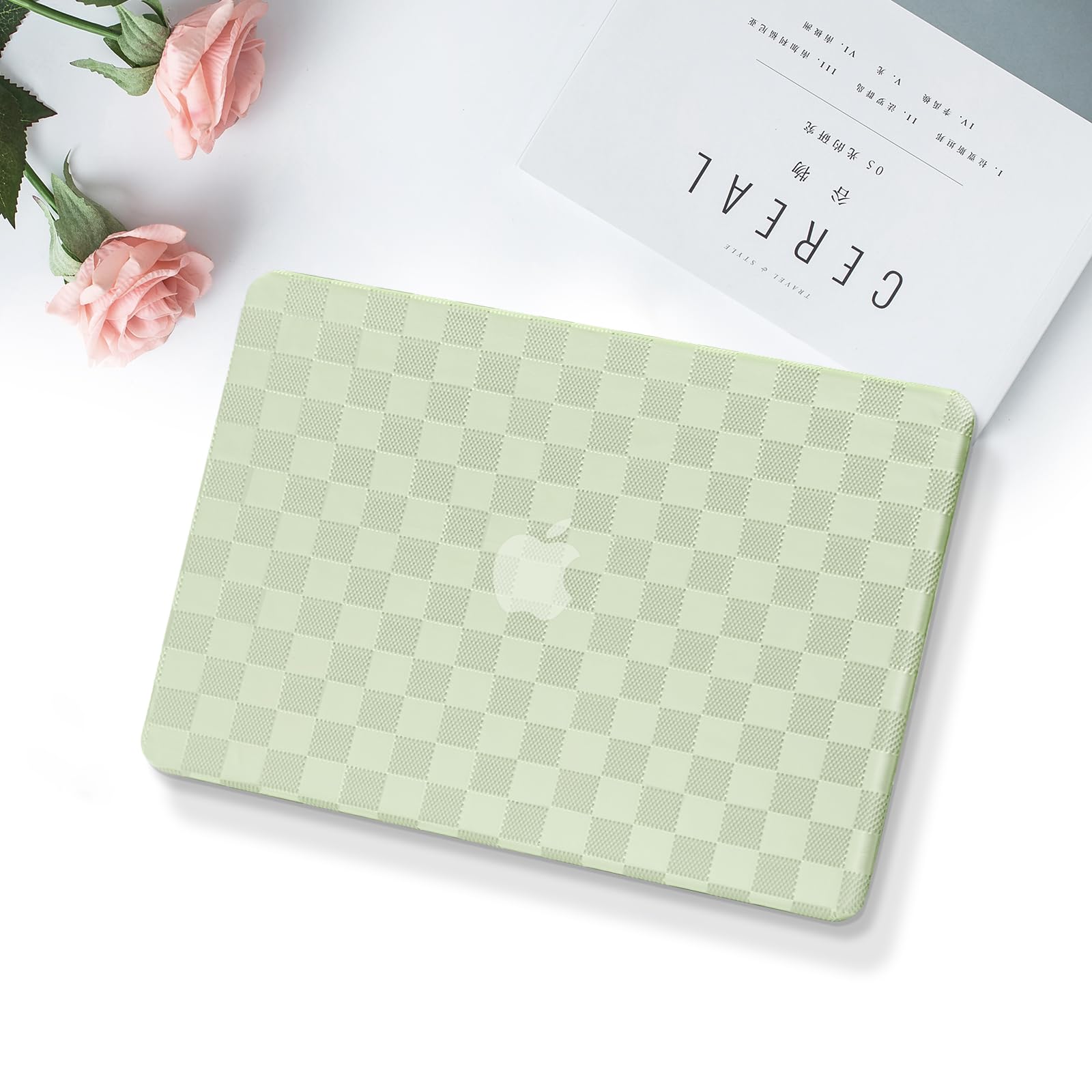 MOSISO Compatible with MacBook Pro 13 inch Case M2 2025-2016 A2338 M1 A2251 A2289 A2159 A1989 A1708 A1706, Checker Texture Grid PU Leather Coated Plastic Hard Shell Case&Keyboard Cover, Sage Green