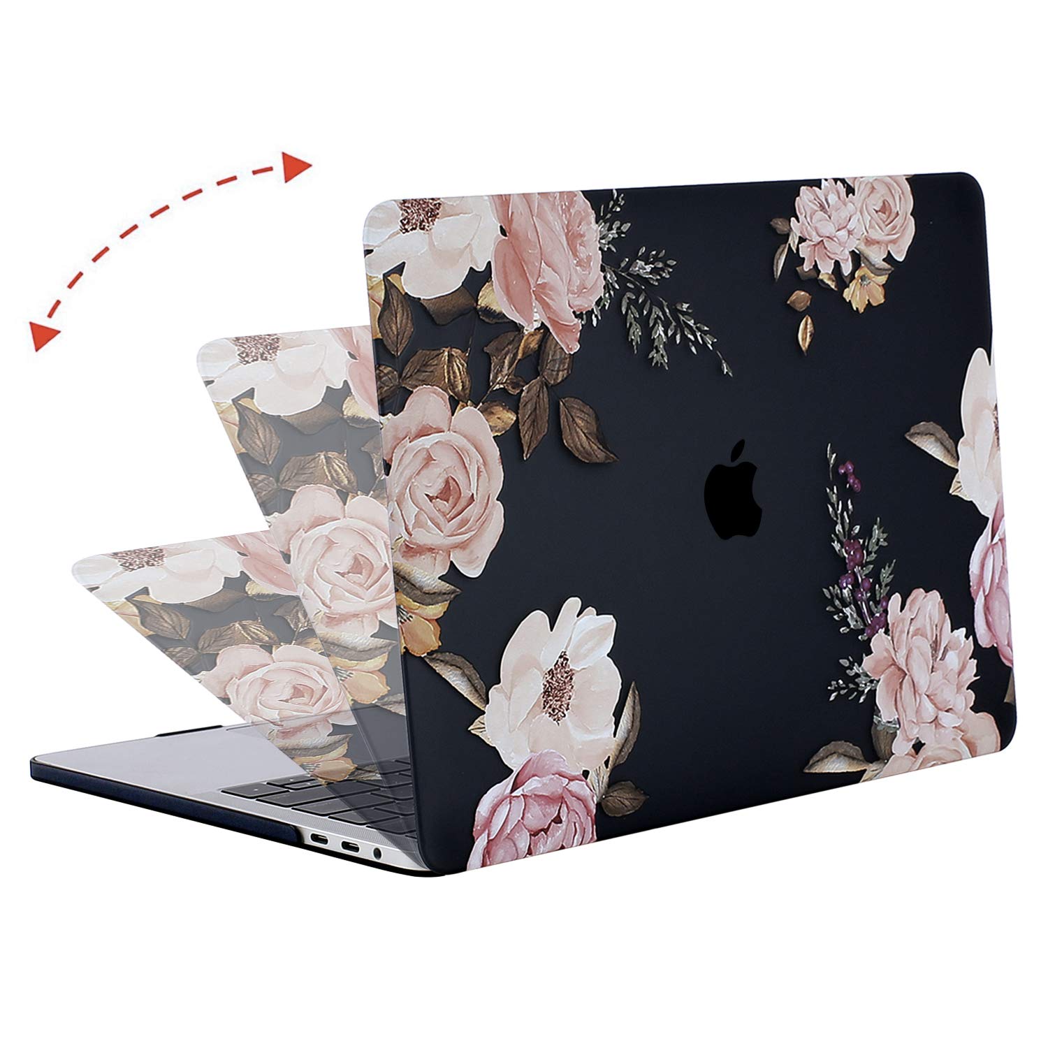 MOSISO Compatible with MacBook Pro 15 inch Case 2016-2019 Release A1990 A1707 with Touch Bar, Plastic Peony Hard Shell Case & Keyboard Cover Skin & Screen Protector, Black