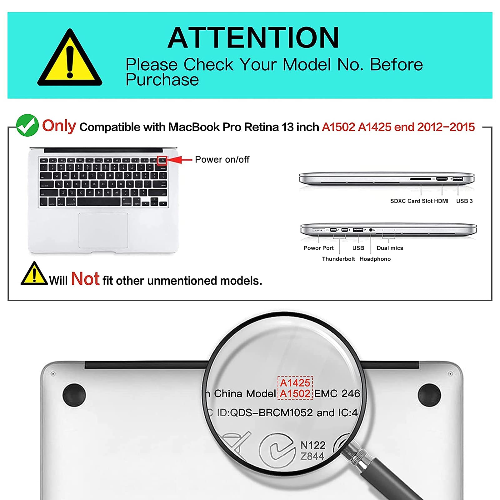 - Please kindly check the model number "A1xxx" on the back of the laptop BEFORE purchase. Make sure it matches the model number in the title "A1425" or "A1502". WARNING: This case is NOT compatible with other laptop models.